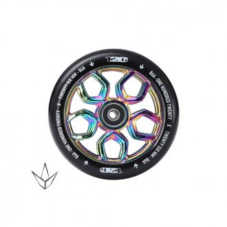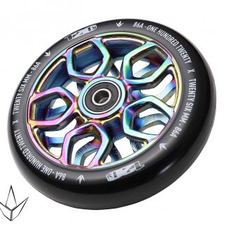 Hollow Cores have been a huge hit recently in the scootering scene because of their unique styling and large surface area for designs. Tanner Fox dropped a great Hollow core styled wheel with Lucky. Wheels with spoked designs are probably the most popular and will probably continue to be. This style lends itself to endless patterns and colors which will never go out of style.