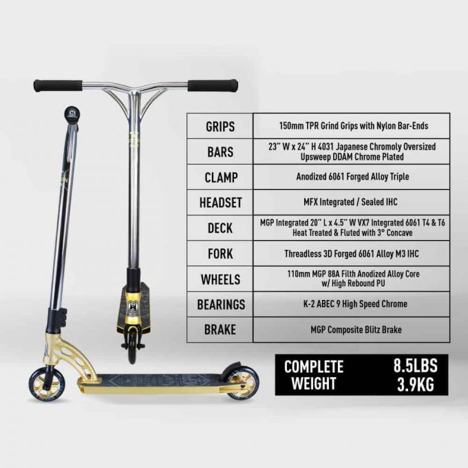 It’s hard to improve on the Team Scooter every year but we did…the VX7 Team Scooter now comes stock with our solid 3D Forged Alloy M3 Fork which can run up to 120mm wheels & a longer 20” deck!