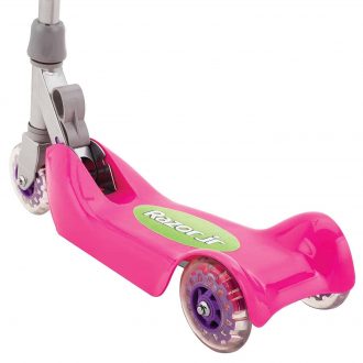 - Popular skateboard-style plastic deck with urethane wheels and rear fender brake