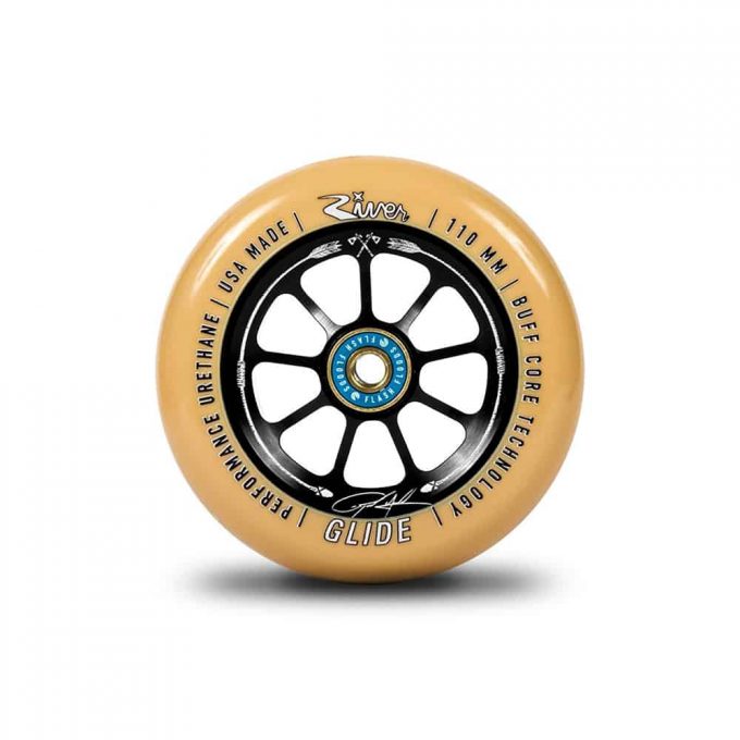 Parts, Scooter WheelsRiver Wheels scooter wheels are high quality scooter wheels, which are an obvious necessity on your scooter. 100mm scooter wheels are a smaller wheel and provide the rider with more control than a 110mm scooter wheel, which is used for maximum speed. All forks that we carry fit both 100mm and 110mm scooter wheels. Made by a high-end manufacturer like River Wheels Scooters, you can be sure you will be pleased with both the quality and price point of these scooter wheels River Glide Wheels are a new wheel offering from Proto. The Glides are flow fast and smooth as a river, which makes Glides ideal for riding park.
